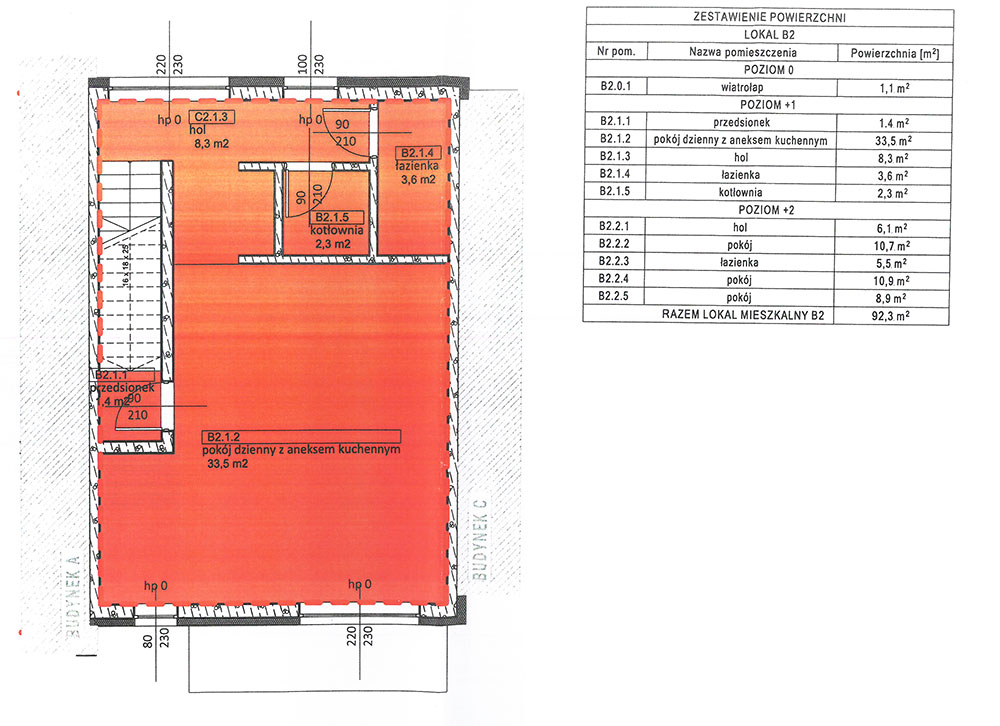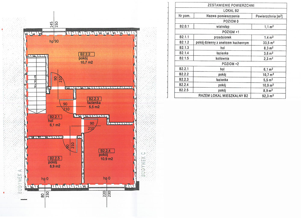 Dwupoziomowe mieszkanie o powierzchni 92,30 m2